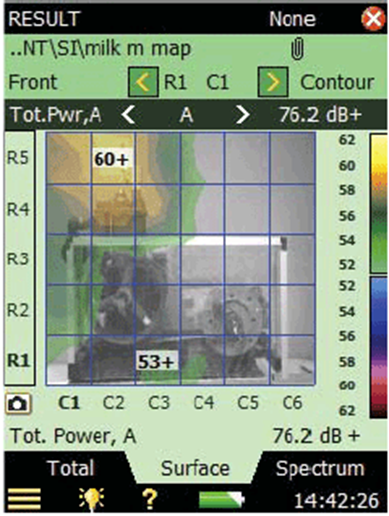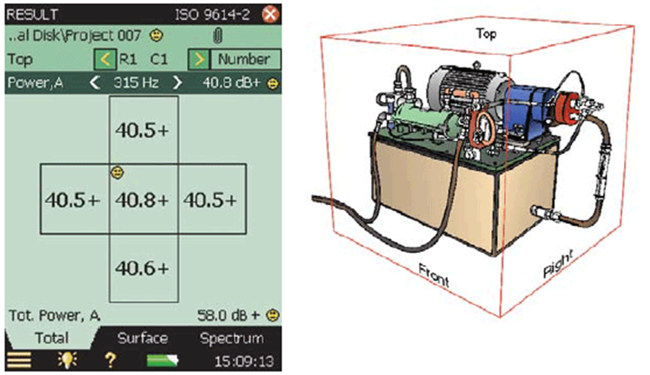 Questa tecnica di misura consente la determinazione diretta del Livello di potenza sonora LWA di macchine che, per dimensioni e/o peso, risultano di difficile o impossibile trasportabilità, attraverso misure di intensità sonora in situ, anche in ambienti industriali fortemente riverberanti e con elevato rumore di fondo, in base alla Norma UNI EN ISO 9614-2.